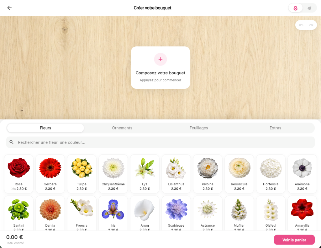 Téléchargez l'application, parcourez les fleurs du moment chez les fleuristes de votre quartier, et composez le bouquet idéal, tout simplement.